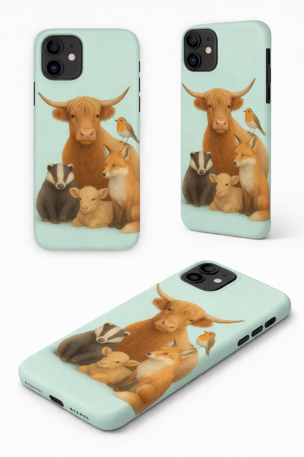 Woodland Friends Phone Case – Highland Cow & Forest Animals